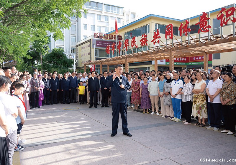 2024年6月19日至20日,中共中央总书记、国家主席、中央军委主席习近平在宁夏考察。这是19日下午,习近平在银川市金凤区长城花园社区考察时,同社区居民亲切交流。 新华社记者 谢环驰/摄
