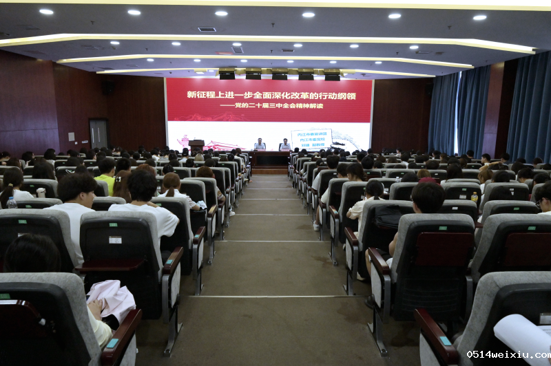 9月18日,学院举行学习贯彻党的二十届三中全会精神宣讲报告会,市委宣讲团卫健宣讲分团成员、内江市委党校教授刘建到场宣讲,学院教职工、学生代表,马克思主义读书会成员代表300余人聆听宣讲。党委书记田承春主持报告会,党委副书记、纪委书记罗苏聆听宣讲。