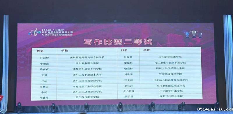 11月30日,2024年“中银杯”四川省职业院校技能大赛Uchallenge英语挑战赛在四川工程职业技术大学举行,我院4名同学参赛,获得3个一等奖,1个二等奖的优异成绩。