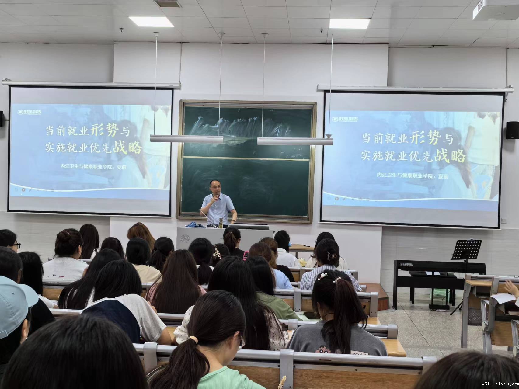 6月13日,学院副院长夏蔚以《当前就业形势与实施就业优先战略》为题在济世楼102教室为2023级中医康复技术专业1~2班全体学生讲授形势与政策课。