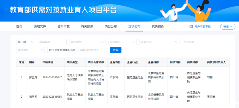 近日,教育部发布了第三期供需对接就业育人项目立项名单,手机版伟德app客户端下载安装教程与大参林医药集团股份有限公司联合申报的定向人才培养项目、与全亿健康药房有限公司联合申报的就业实习基地项目获准立项。